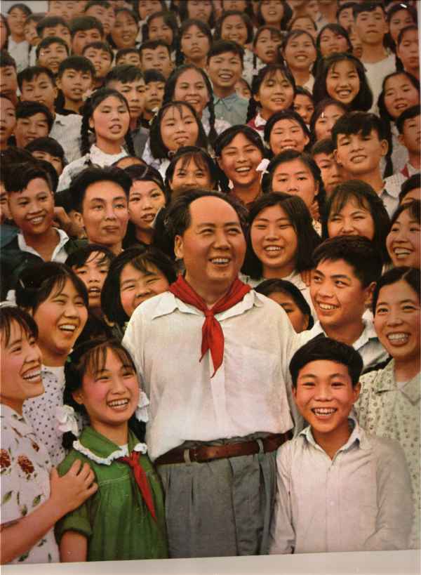 毛主席同韶山学校的师生们在一起。(一九五九年)