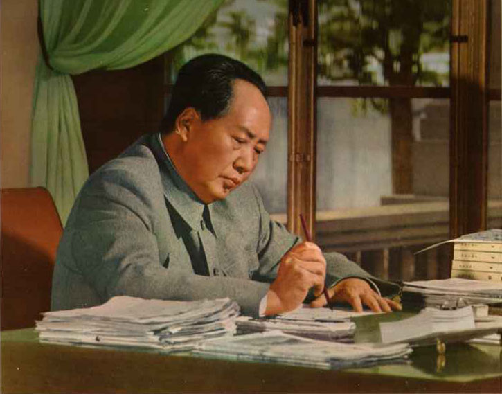 毛主席校订《毛泽东选集》第四卷。(一九六0年)