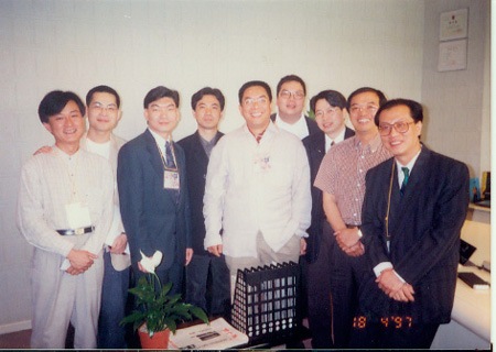 珠海圆明园,第一届音乐总评榜,我(右一)在唐哥(中)的协助下,召集齐香港各大唱片公司高层,唐哥(李再唐),是我父亲的电白小学同学李乙辉先生的弟弟,世伯的细佬,香港广播童星,5岁上电台,现香港电台台长.我91年第一次出国回港,唐哥带我参观香港电台,世伯为我买许冠杰演唱会门票....做细可以撒娇.真好呵!!93年曾和车淑梅一起主持广州一酒店开张show...问候李伯,唐哥.到香港拜访你们!祝一切都好~~!