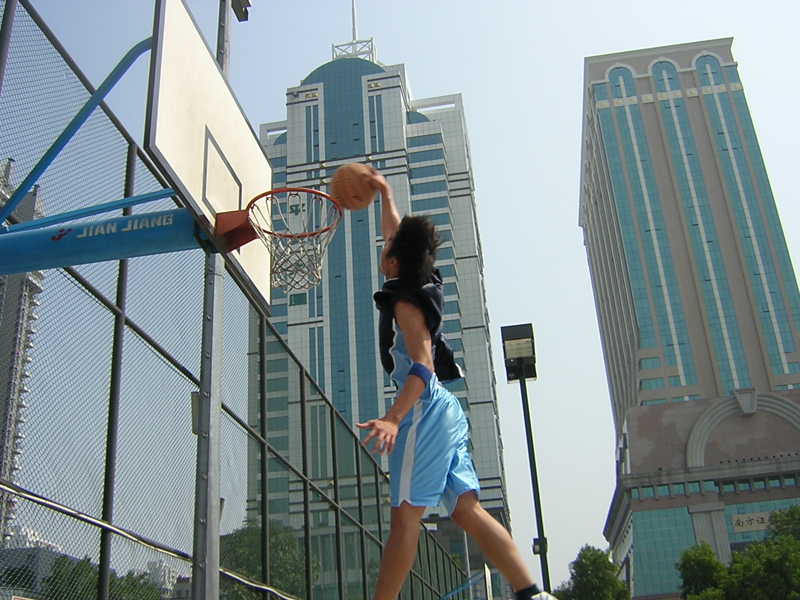 晕``难道现在在一中的师弟都跳不起来了~~我们那届同学很多人扣篮都是松松的`还有些去广州参加扣篮比赛拿亚军~`(当然`除了我~我比较勉强~~哈)