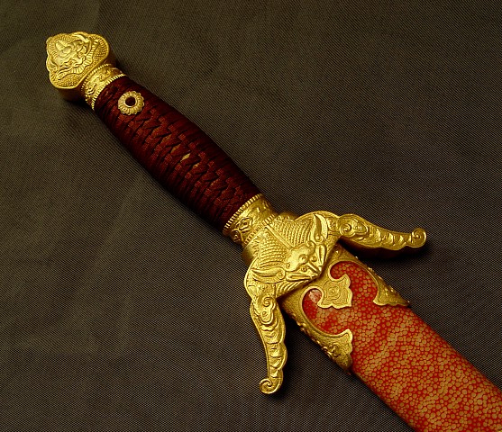 现代做的古法纯手工冷兵器,虽说不能削铁如泥,但削竹如泥是不成问题的.每一把刀剑都经过上万次的折叠煅打,是真正传说中的神兵利器.当然每把的造价也不低,看师傅的名气与手工而不等,基本上都中5000至10000多不等,目前国内的名家有"欧冶""竹本"等人~~~