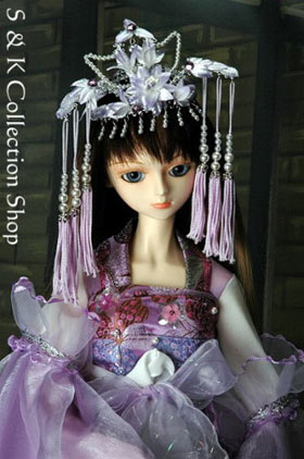 对比满服的特色:立领歪(对)襟,小袖盘扣,滚边无腰,上袍下裤