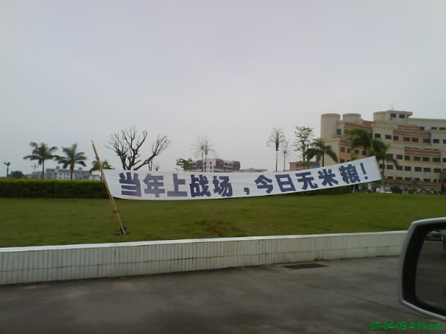 QUOTE(byronroy @ 2007年04月09日 Monday, 09:09 PM) 希望他们能争取到他们想要的权益. 另:不知此静坐或游行是否经过申请? 当兵的和老师就是不一样,说做就做. [snapback]1721485[/snapback] 哈哈,你没看横幅,打的是"纪念对越反击战图片展"的,其它的诉求再隐藏其中,在中国,你公开干是不行的.