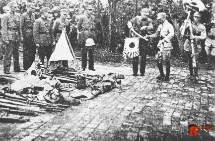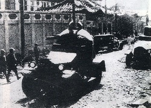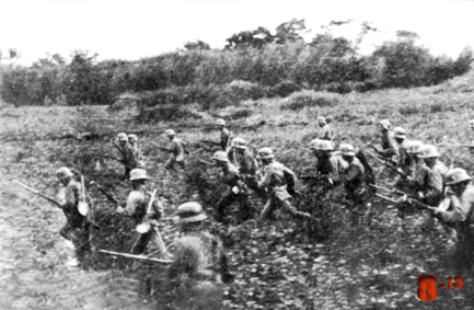 日本侵略军靴下铁钉铿锵,图为骄横不可一世的日寇奈良部队