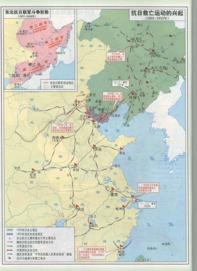 1-5月,日军先后占领了热河、察哈尔两省及河北省北部大部分土地,进逼北平、天津,并于5月31日,迫使国民党政府签署了限令中国军队撤退的《塘沽协定》。