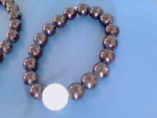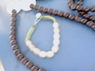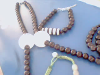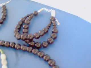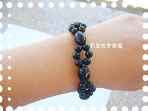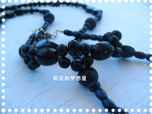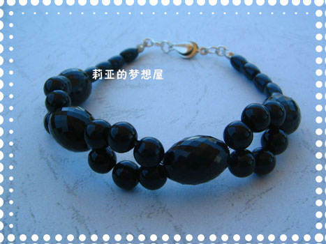 做成一条项链,和三条黑手链,还有一条玉石编织手链