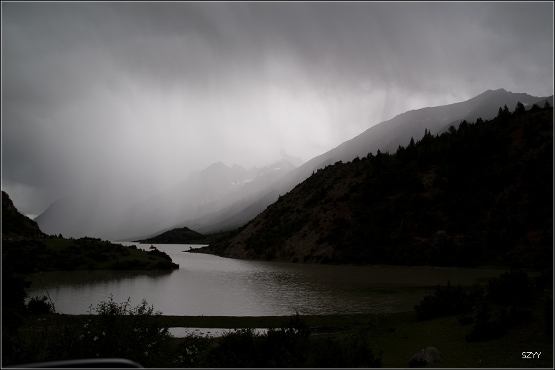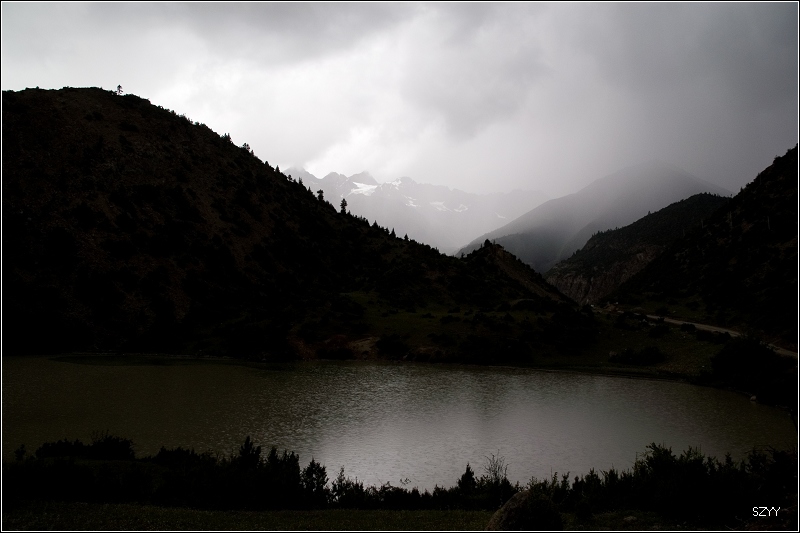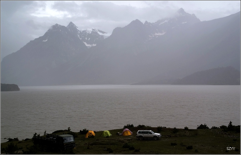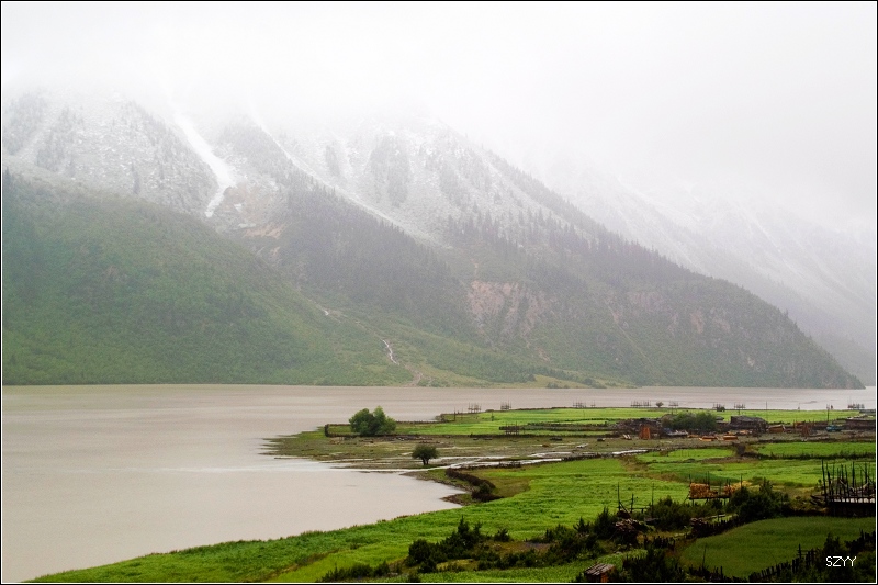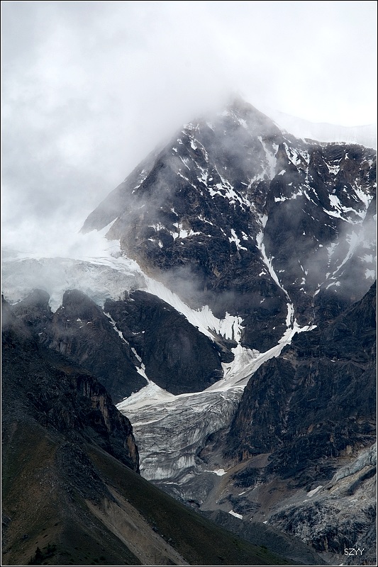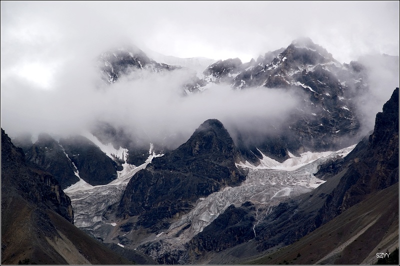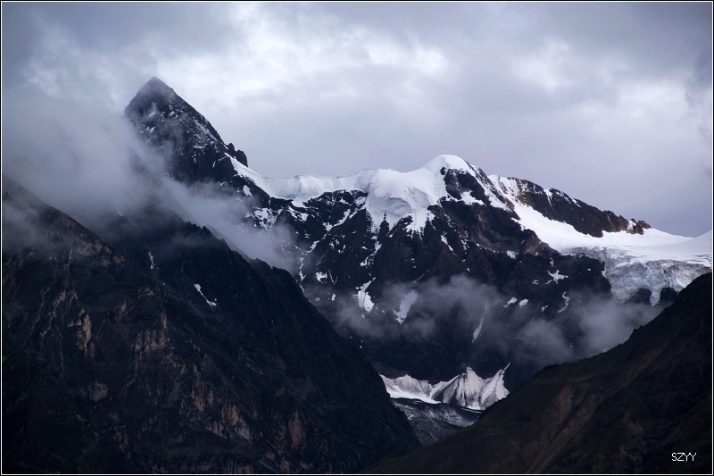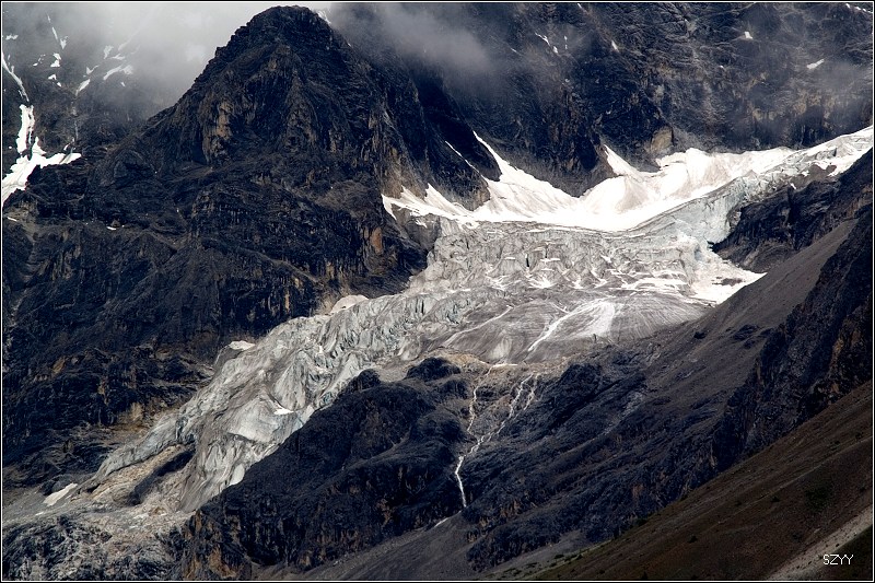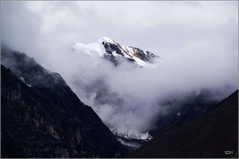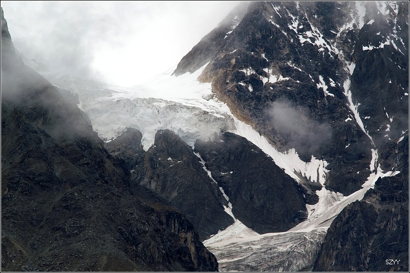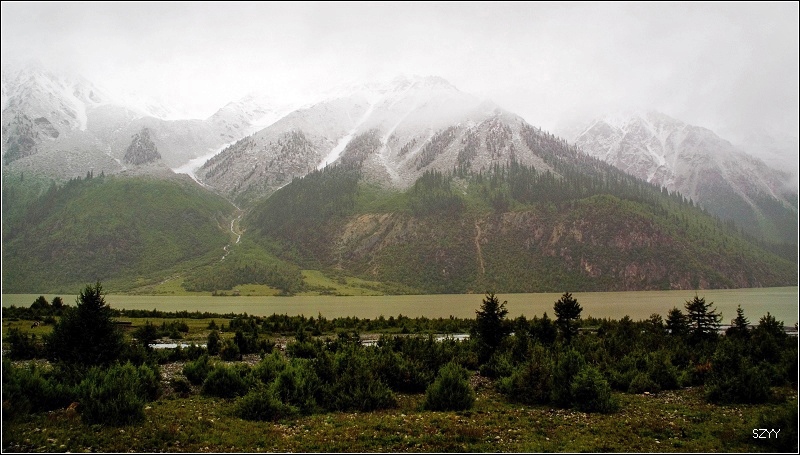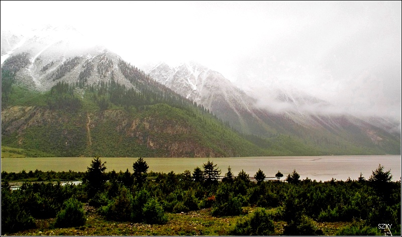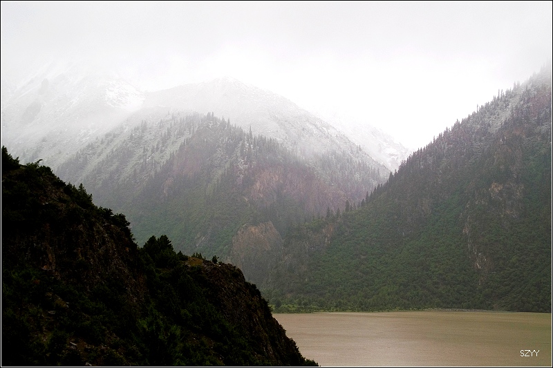 8点35从然乌出发,由于昨天晚上下了雪,气温只有3.5℃,当地气象局发了结冰警报,继续沿然乌沟行车,两侧都是雪山,气温下降到1.5℃,开始下雪,雪花落在车窗上可以清楚地看到冰晶,车里开了暖气。