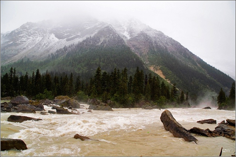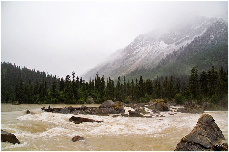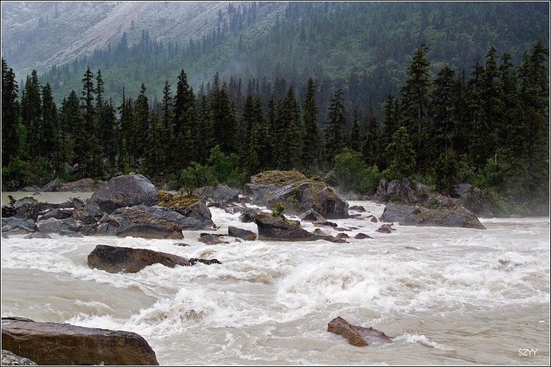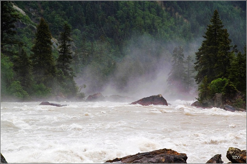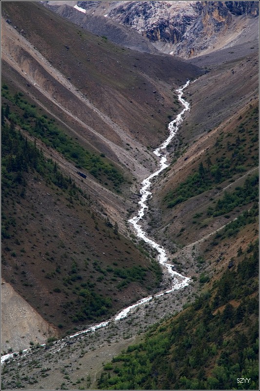 沿然乌沟上行,路边的河流汹涌澎湃,这是易贡藏布江的一条支流,汇入易贡藏布江后,最终在雅鲁藏布大峡谷进入雅鲁藏布江.