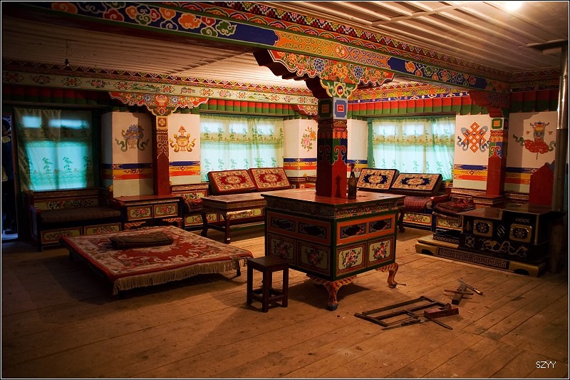 第十三天 (7月26日)林芝到拉萨 早晨醒来北方郎说晚上听到了狼叫,周围是比较原始的草原和森林,有狼也很正常,我睡的很实,什么也没听到。昨天没顾得仔细看看房间,很累,早早入睡了,早晨起来才在房子里看了看. 这是客厅 [attachmentid=143832] [attachmentid=143833]