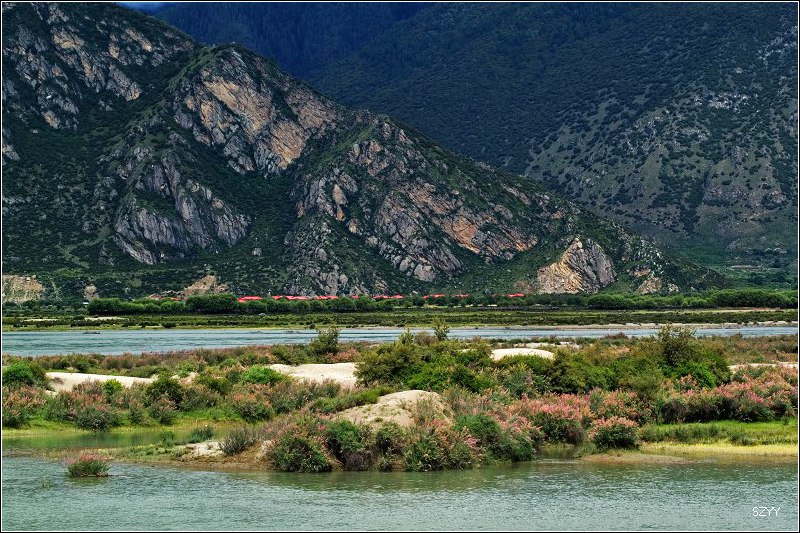 到林芝(也就是八一镇)时天色尚早,我们决定沿尼洋河看一看。一路都是土路,很颠,只能慢慢开。尼洋河谷非常开阔,河滩上有很多开着红花的植物,问了当地人,也叫不出名字,总之十分漂亮,一路上有很多美丽的风景,到了尼洋河观景台,视野很开阔。尼洋河的河滩草地上,无数牛马羊在认真安详地吃草,景色美不胜收 美丽的尼洋河谷 [attachmentid=143967] [attachmentid=143968]