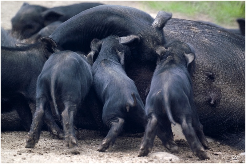 路边的小猪们快乐地吃奶
