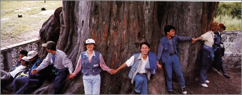 开车回到林芝,我一路上念叨了好几次要看世界柏树王,我有一套著名环保专家唐曦阳老师签名的书――《环球绿色行》,以前在看这本书时,就看到一张照片,是他1996年带领大学生绿色营在林芝拍的,大家拉着手,围绕着巨柏,树干非常粗大,我印象很深,所以这次一定要看到。