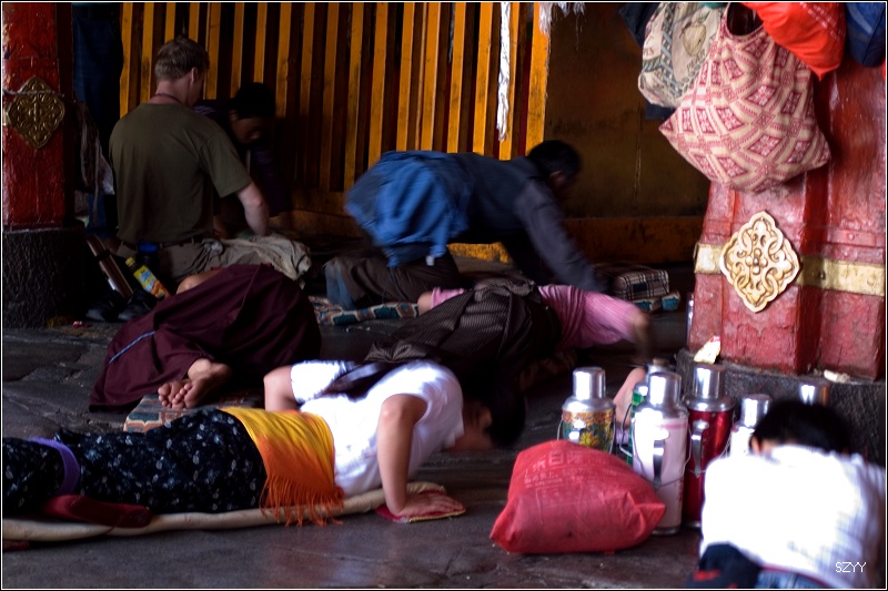 去布达拉宫,门票买不到,每天只卖出700张,当天即使买到也是第二天的票。排队买票要五六个小时,黑市票炒到500多一张,走的时候luck21cn兄介绍让我们到了拉萨,找西藏摄影家协会的副主席帮忙,那是他的朋友.可是我们想了想,还是不要给人添麻烦了,再说对宗教了解不多,布宫里面也不让拍照,还是决定暂时不进去了,回程的时候再看情况。在外面拍了几张布宫的照片。然后去了罗布林卡。
