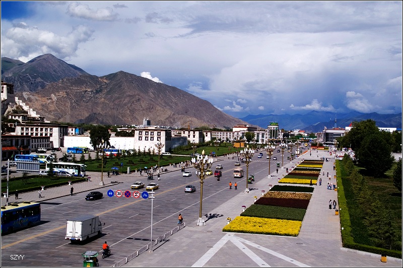 游览大昭寺后,回到广场,然后上药王山拍布宫,天气很热,可是由于怕感冒,我们不敢脱衣服,在广场上休息的时候,一阵阵风吹过来,有些凉。
