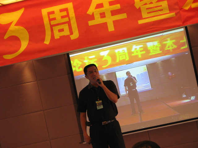 论坛主要管理者梁生,热心资深人士四中乐叔及来自各界的坛友们共100多人一起,欢聚一堂,共同庆祝论坛三周岁生日。四中乐叔在庆祝酒会上发表了简短而又热情洋溢的讲话。