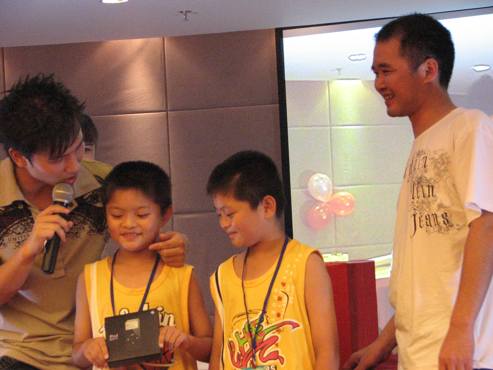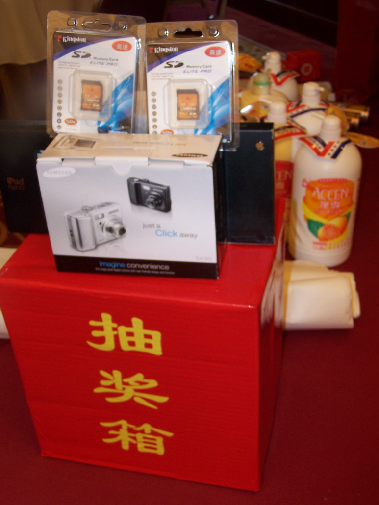 酒会中,还举行了幸运大抽奖,精彩奖品有高级手机、数码相机、MP4等等,10多名幸运儿,应运而生,个个乐不可支。特别引人的是有一对孪生兄弟,先后连续上台领奖,真是惹人喜欢。