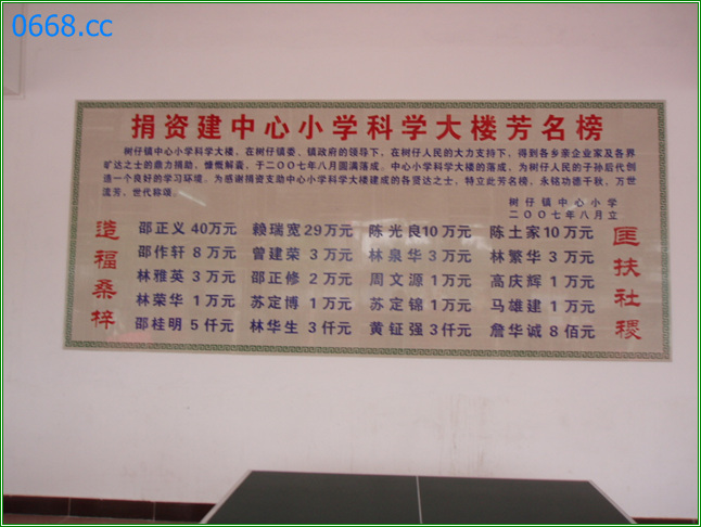 对关心捐资树仔中心小学科学楼建设和学校发展的各级领导和社会各界人士表示衷心的感谢,