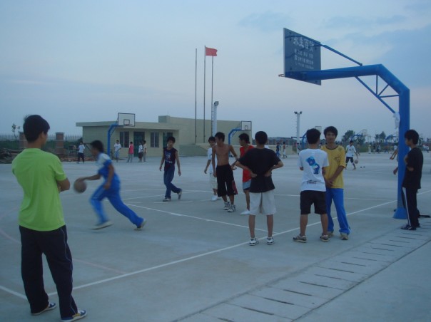 恩,原来还有女子篮球的,看到有几个女学生跟体育老师在练球,记忆最深刻是那个高个子女生,她打球应该不错。
