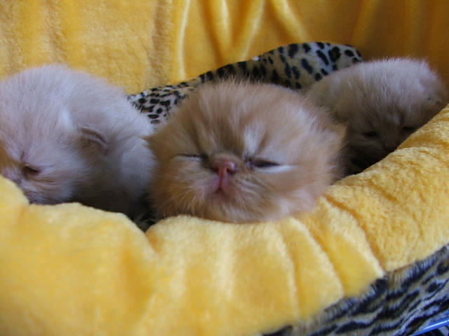 9.26日.我家的波斯猫妈妈(猪猪)生下了三只小猫猫.两只乳色.一只红色虎斑.三只都是猫弟弟.猪猪很懂得照顾小猫.生产过程都不用我帮忙.生完后把三只小猫舔得干干净净.小猫们很有力的吸奶.猪猪真让我省心.非常好的猫妈妈.