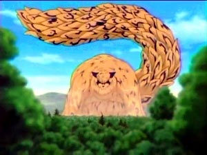 日本神话原型: 体形最小的尾兽(相对)蓝色,依靠在地上掘洞居住,在有粘土的地方可以变化成各种其他动物及隐形,善于利用粘土伪装,很难碰到