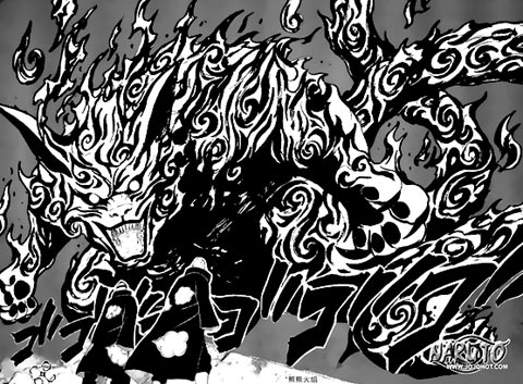 下场:行踪不明,再没有被再次封印之前,九尾的目标就是找到八娱大蛇,或者杀死所有忍者直到找到封印他的忍者为止(然后,就被四代给....)