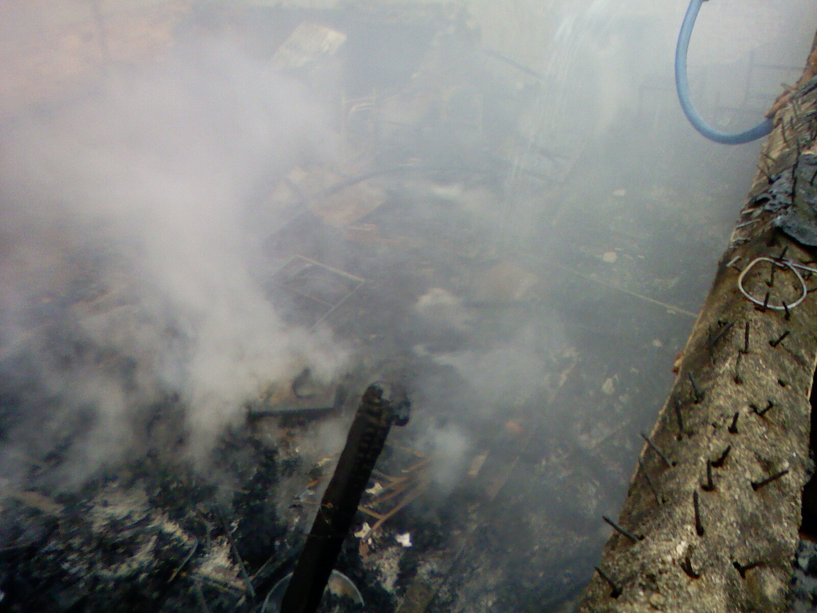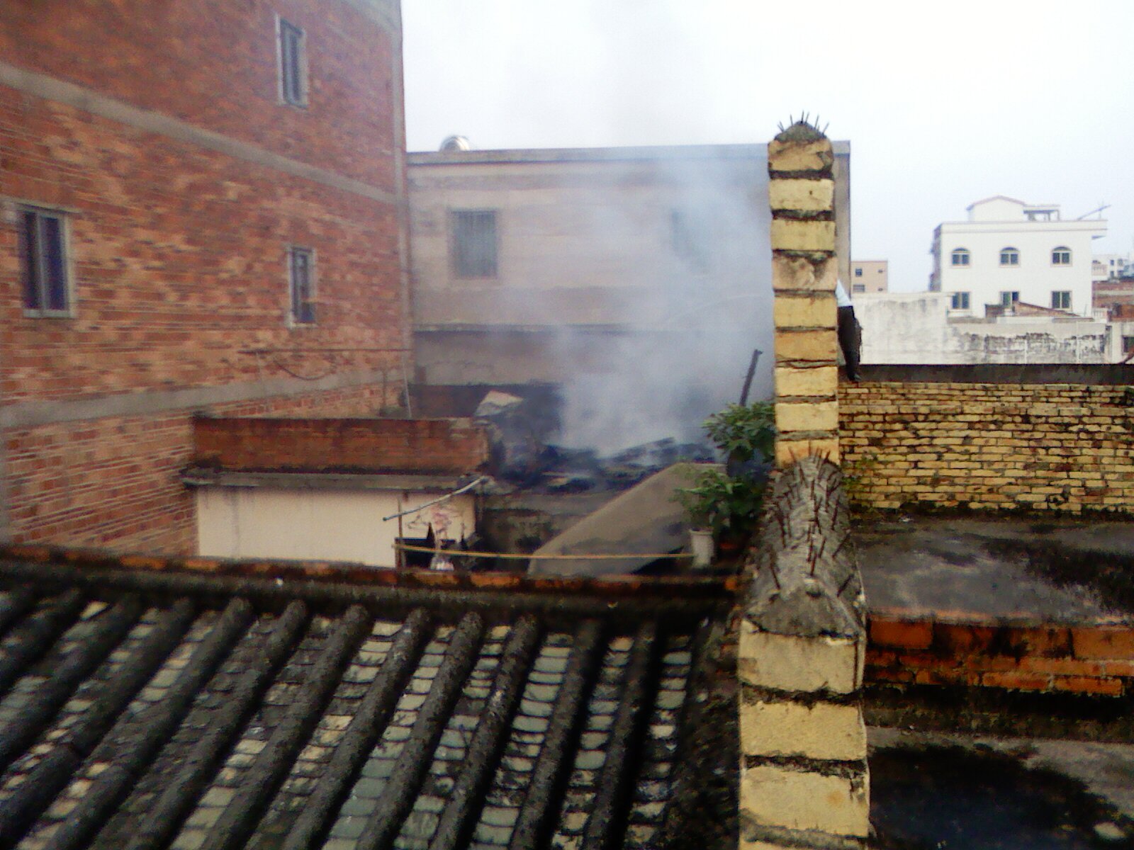 本人相机对面烧得最猛位置旁的窗口及左侧窗口,以及我持相机这边都在派出所同志,你以为在玩,当时火中是有煤气瓶的,大家只能在安全第一的情况下灭火