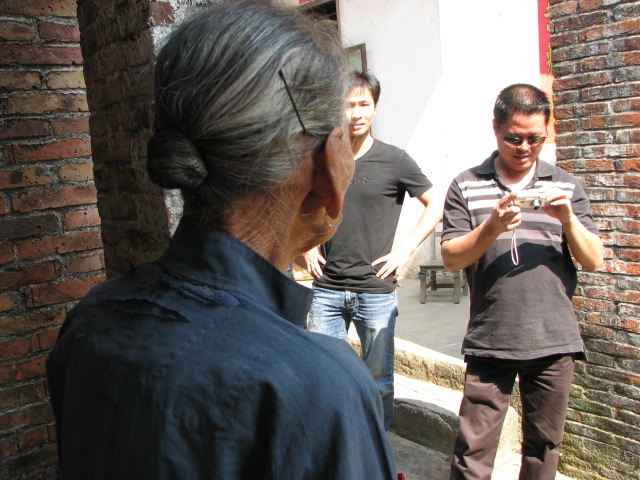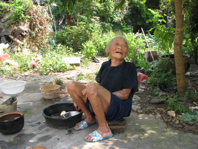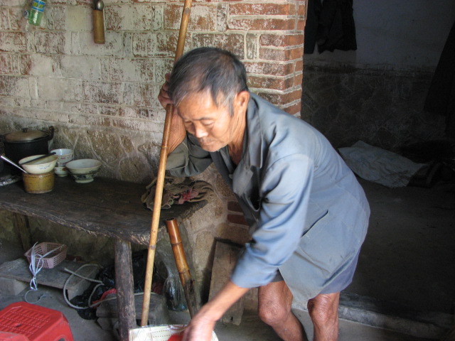 这位老人,严重驼背,站立成n形,只好坐着和我们交谈................