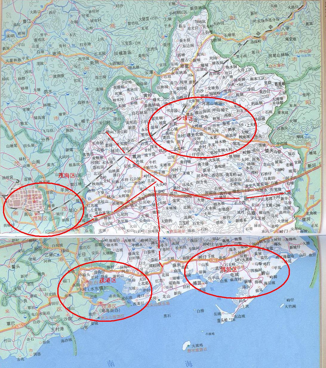 1、将水东及附近几个镇划入茂港区(也可以改名为水东区)