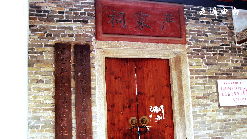 严家祠始建于明宗祯14年(公元1641年),原名霞海书院,清康熙59年(公元1720年)进行维修,改名为严家祠,1928年再次进行维修。1925年6月,××党员邵贞昌等在此成立中共南路第一个党支部――中共电白县支部。1926年2月电白县农民协会也在此成立。