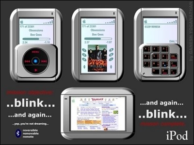 不过iPod也真是的,出了这么多代,外观改变并不是很大,也许这就叫经典设计,苹果一定要在这个外形设计上把能捞的全捞来。《手机》里有句经典的台词――“审美疲劳”,看了这么多年多少也会有点。因此一些网友,特别是发烧的苹果迷们设计了一些下一代iPod的假象图,应该算是大家对新iPod的一种美好期待吧。