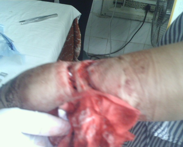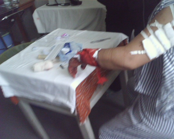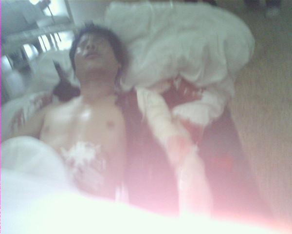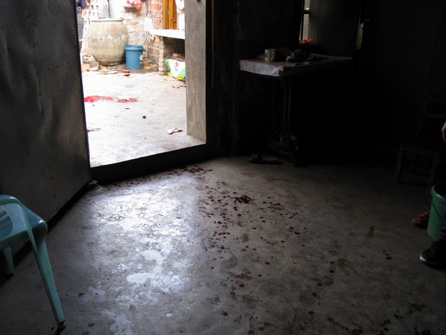 1月11日晚上10点多,在电白县博贺镇发生一起多个朦面人入屋砍人,导致屋主两人身受重伤,男主人两手残废.事发原因不清楚,现在警察在调查中.现在伤者在茂名人民医院外科8楼治疗.照片是本人在第二天拍照的.本人发贴的目的是希望媒体能够关注,报道.本事件绝对真实.传上的图片血腥场面很多,阅读真请注意