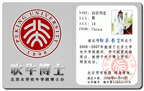 白衣书生 .. 注册 2007-01-17 消息 6,374 反馈评分 0 点数 61 2008-04-04 #69 QUOTE(蛙子 @ 2008年04月04日 Friday, 06:30 PM) [snapback]2181284[/snapback] 精!!!.... 我成了牛鼻子小道..... .......