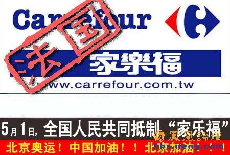 昨天下午,本人突然收到几位爱国人士的手机短信,谨抄录于下:“4月24日至5月24日,希望所有中国人不要去家乐福购物!并尽可能减少购买法国红酒、香水等商品!由于法国家乐福公司的大股东LV捐巨资给达赖,且法国民众支持藏/,独者甚众,法国总统公开声言拒绝出席奥运会开幕式,请团结起来,让法国看到中国人的力量!请转发给所有联络人,并请他们转告家人,让家乐福门可罗雀30天,与奥运会同长!(请尽量转发!)”云云。