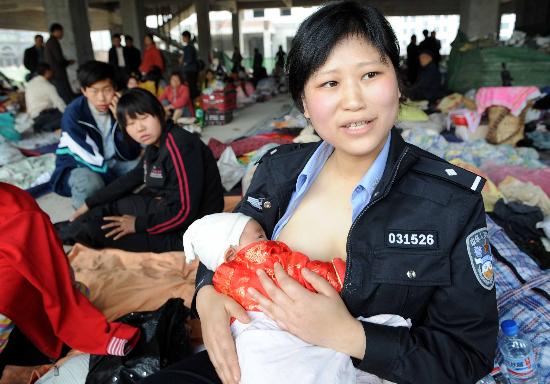 玫瑰党 荣誉主席 注册 2007-12-02 消息 7,563 反馈评分 0 点数 0 2008-05-17 #1 5月16日,四川江油县公安局女民警蒋小娟在地震灾民庇护所为一名地震灾区孤儿喂奶。蒋小娟义务为一些急需哺乳的地震灾区孤儿喂奶,却“狠心”把自己才6个月大、同样需要母乳喂养的孩子交给父母照料。 附件 10492699.jpg 43.2 KB · 查看: 433