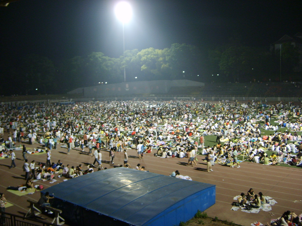 北川救援人员及灾民因堰塞湖紧急撤离 2008年5月17日,四川北川,北川救援的人员突然接到对讲机传来紧急撤退的命令,命令中称天上直升飞机发现北川县城后侧山顶上的茶坪水库出现裂缝,可以引发决堤,瞬间,在武警与警察地安排下,上万人的救援大军急速撒离。