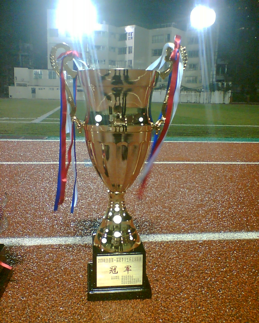 两个奖杯最吸引人的地方就是很重手. 作为第一届学生级的冠军. 可想而知含金量多高了. 电白的学生们, 希望你们为了自己的荣誉去拼搏. 希望你们可以在这次联赛中赛出水平. 希望你们为电白将来的足球事业添砖加瓦. ----电白足球的"希望工程".