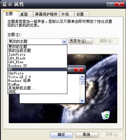 木糖醇 讲科学.破迷信.除陋习... 荣誉会员 注册 2005-07-25 消息 5,900 反馈评分 1 点数 61 年龄 37 2008-07-15 #4 [attachmentid=181185] [attachmentid=181186] 右键桌面---属性---主题---更改的主题---选择一个---应用---确定 附件 1.jpg 38.3 KB · 查看: 483 2.jpg 31.6 KB · 查看: 488