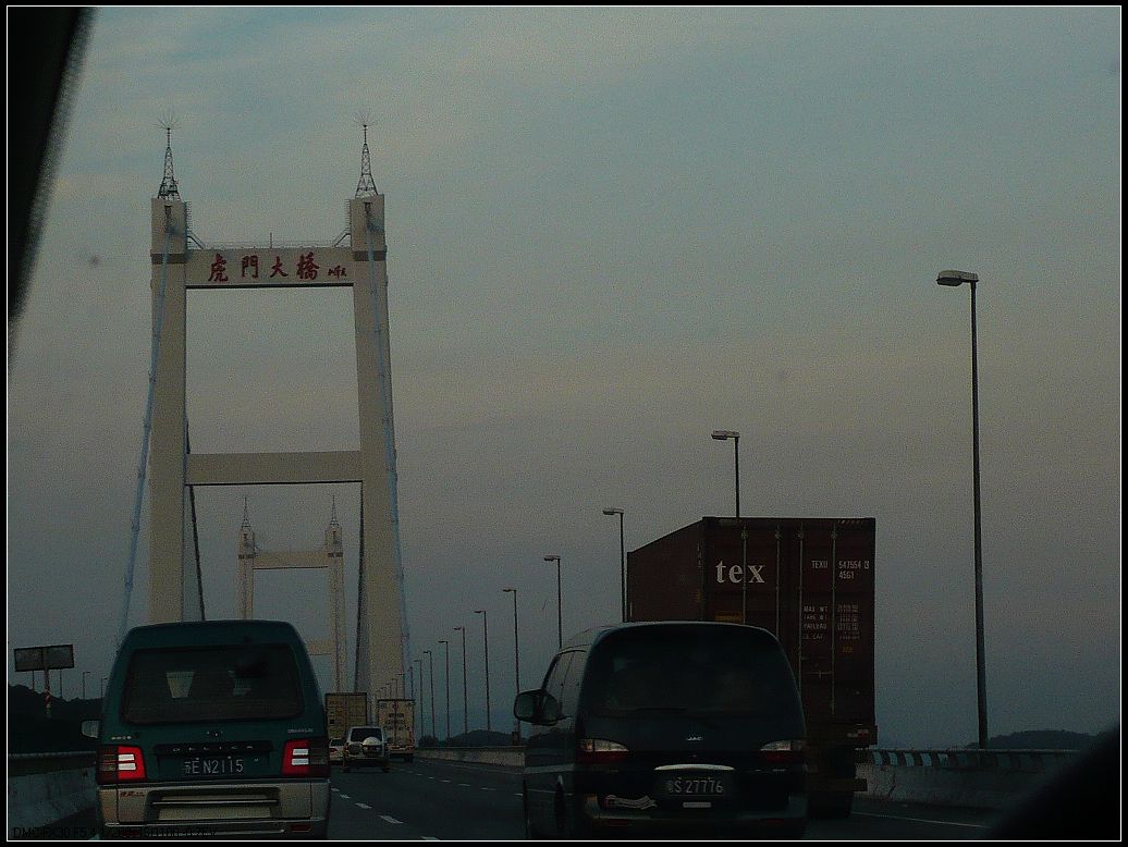虎门大桥到了..说了别急嘛..这下可好..碰到堵车了.. 在虎门桥上堵了一个钟..发现阿丑的狮吼功比学广的更强.. 我提出虎门销烟的意思是到了虎门就要烧一支烟..得到包括大饼车主等在内不抽烟人士的支持.. 爽.. [attachmentid=186722] [attachmentid=186723] [attachmentid=186724] 这大桥真长啊..走了一个小时才走过去..
