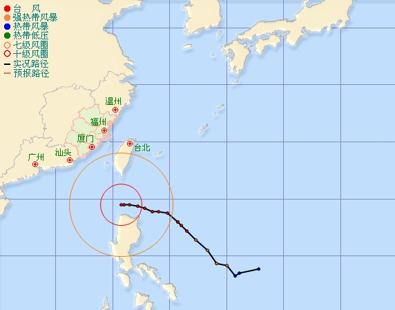 今年第14号台风“黑格比”(HAGUPIT)于今天下午加强为强台风,下午5时其中心位于我国台湾省恒春市以南大约280公里的海面上,就是北纬19.5度,东经121.5度,中心附近最大风力有15级(48米/秒)。