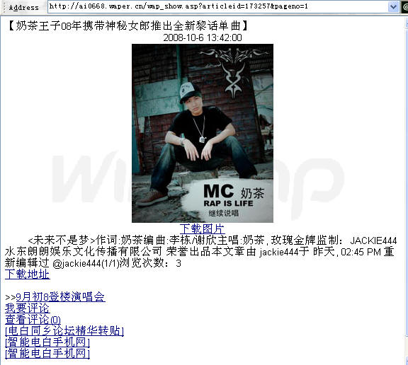 奶茶-王子08年携带神秘女郎推出全新黎话单曲 (1人在浏览)
