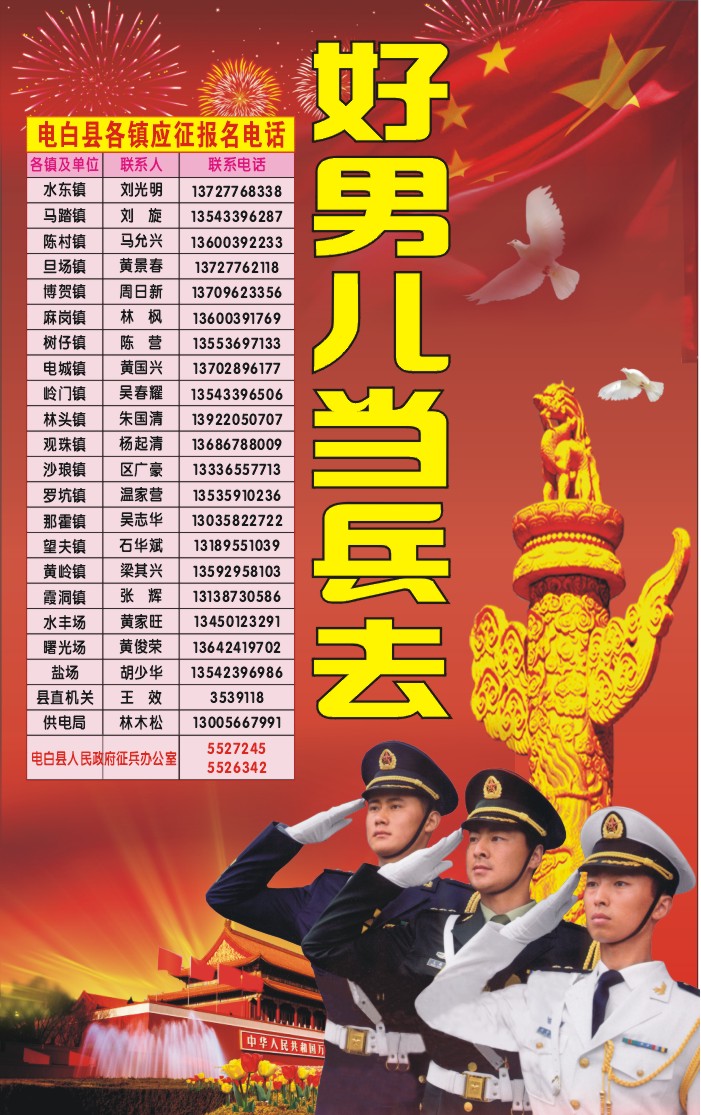 电 电白县人民政府征兵办公室 幼儿园 注册 2008-10-22 消息 16 反馈评分 0 点数 0 2008-10-23 #2 好男儿当兵去 附件 好男儿当兵去1.jpg 243.1 KB · 查看: 451