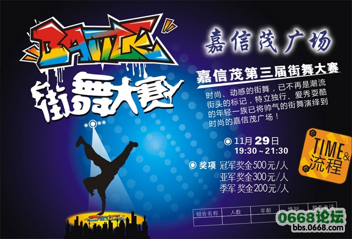 深 深w蓝 高中一年级 注册 2008-05-07 消息 560 反馈评分 0 点数 1 2008-10-28 #1 嘉信茂第三届街舞大赛11月29日开赛 快来报名吧... 附件 嘉信茂第三届街舞大赛11月29日开赛 快来报名吧....jpg 223.8 KB · 查看: 519