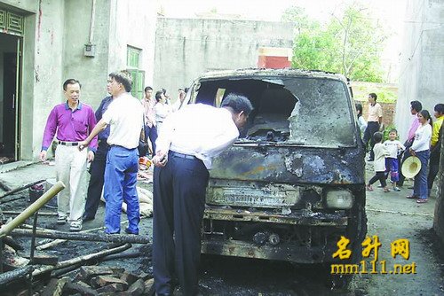 死四个,伤两个,死的四个都被烧焦啦,有个肠子都流出来了.
