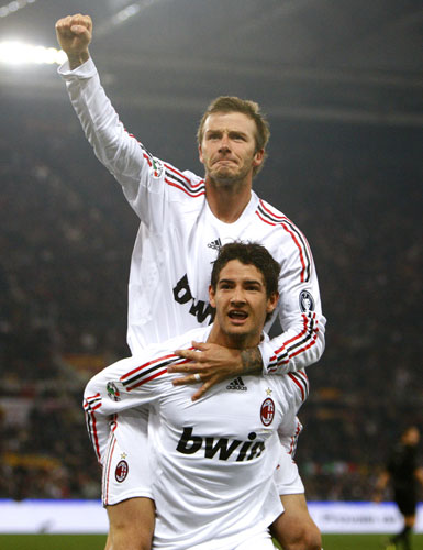意甲-帕托5分钟梅开二度 AC米兰客场2-2战平罗马 北京时间1月12日3时30分(意大利当地时间11日20时30分),意甲第18轮开始最后1场焦点之战,AC米兰客场2比2战平罗马,与领头羊国际米兰维持9分差距。贝克汉姆上演意甲处子秀。上半时,武齐尼奇首开纪录,这是他与米兰对阵连续3场破门。下半时,帕托5分钟内连下两城,本赛季联赛进球增加到8粒,超过卡卡与小罗,成为本队头号得分手。但此后武齐尼奇也梅开二度。