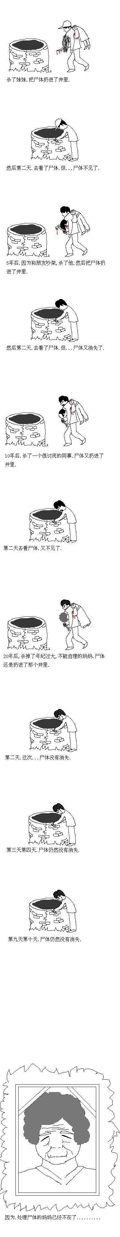 因为妈妈以前就是帮他处理尸体的人,现在妈妈死了,就没有人帮他处理尸体了