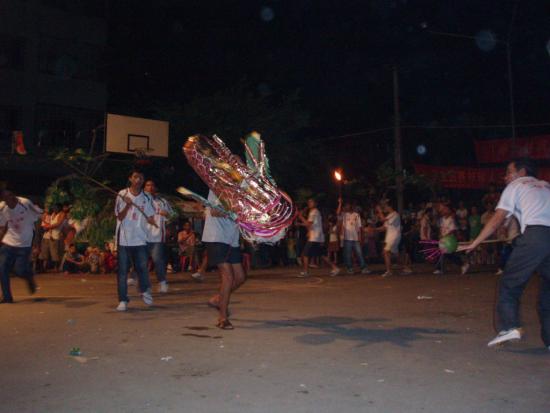 农历七月十四,有幸到树仔镇观树龙舞。据说当年有邪神到树仔作恶,把太阳遮了。群众到关帝庙禀告关帝。关帝上书天庭。天庭派青龙把邪神赶走。于是树仔人有七月十四舞树龙消灾驱邪的习俗。