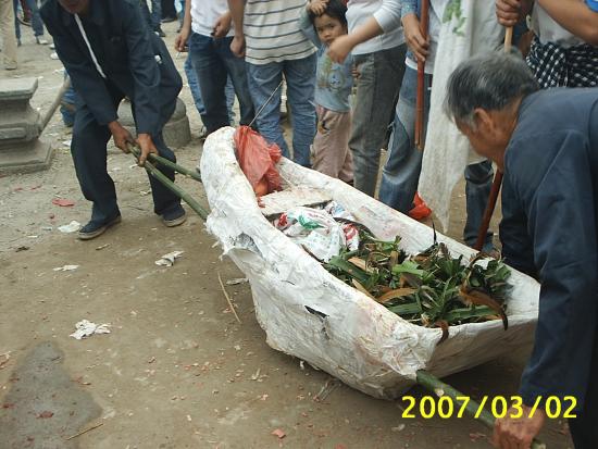 到了第三天“年例尾”的早上,火烧纸船,菩萨回庙,年例也就此结束。