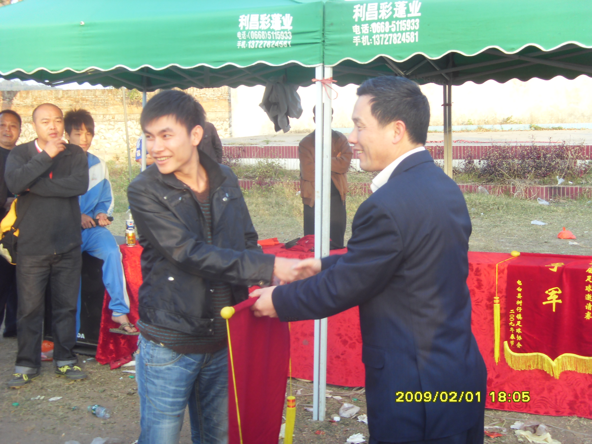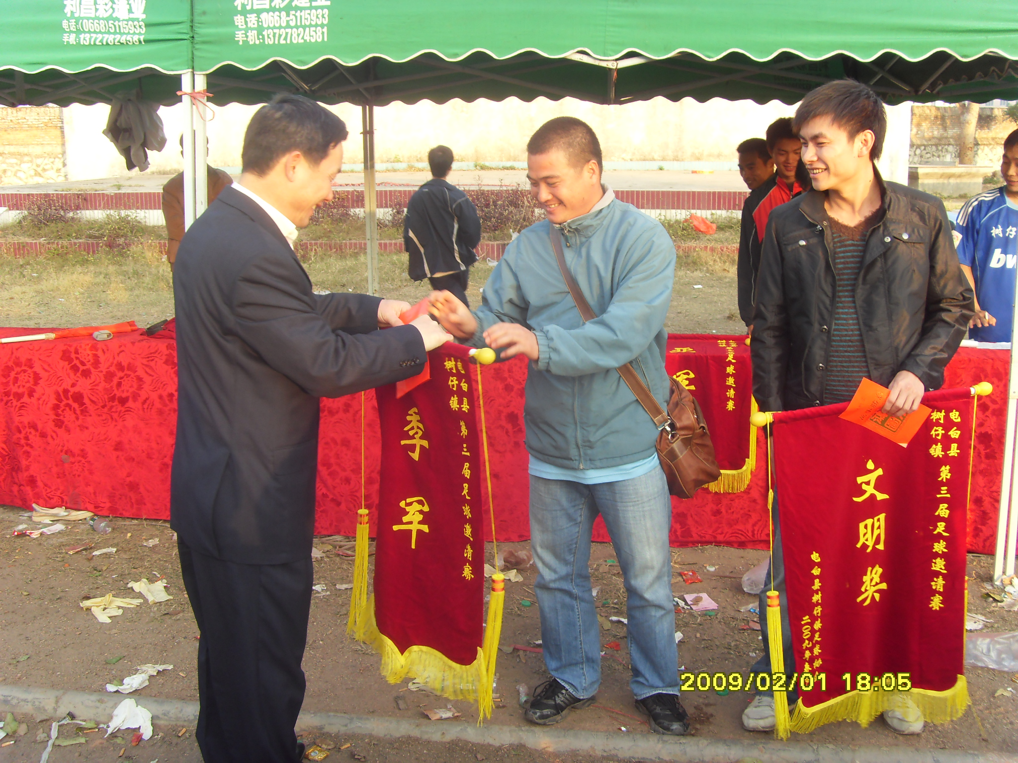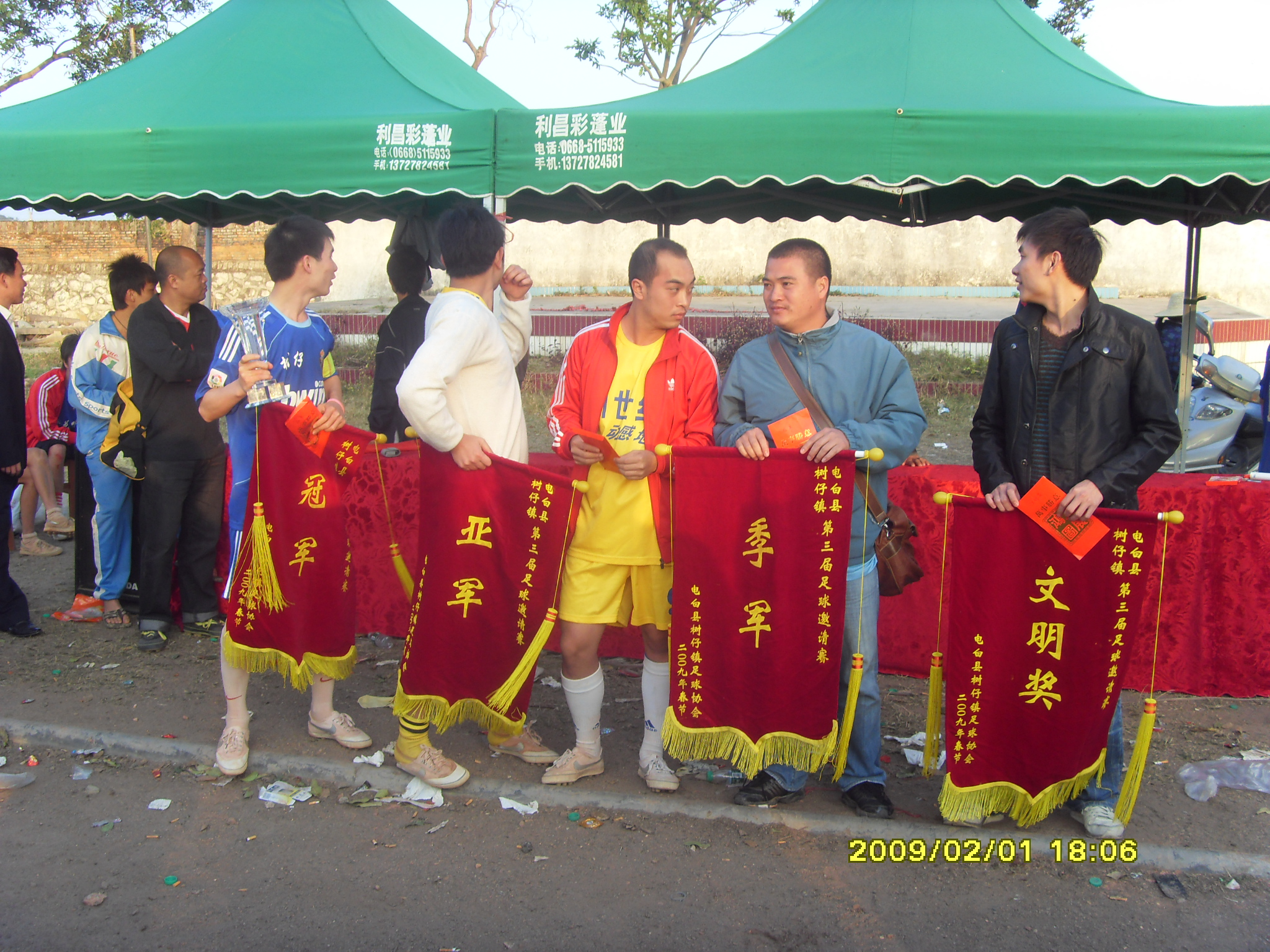 雪花啤酒足球代表队祝贺树仔代表队获得2009年电白县树仔镇第三届春节足球邀请赛冠军!