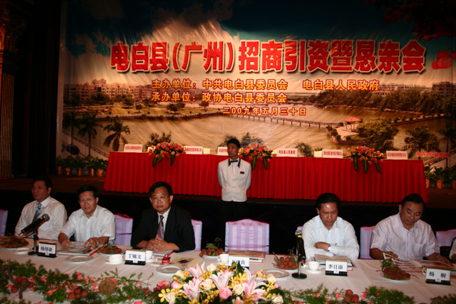 QUOTE(微言 @ 2009年06月06日 Saturday, 11:40 AM) 从上面图片看到了很多论坛里常传说的各界"大佬". [snapback]2777600[/snapback] 2009电白(广州)招商引资暨恳亲会 2009年5月30日,在广州花园酒店隆重召开