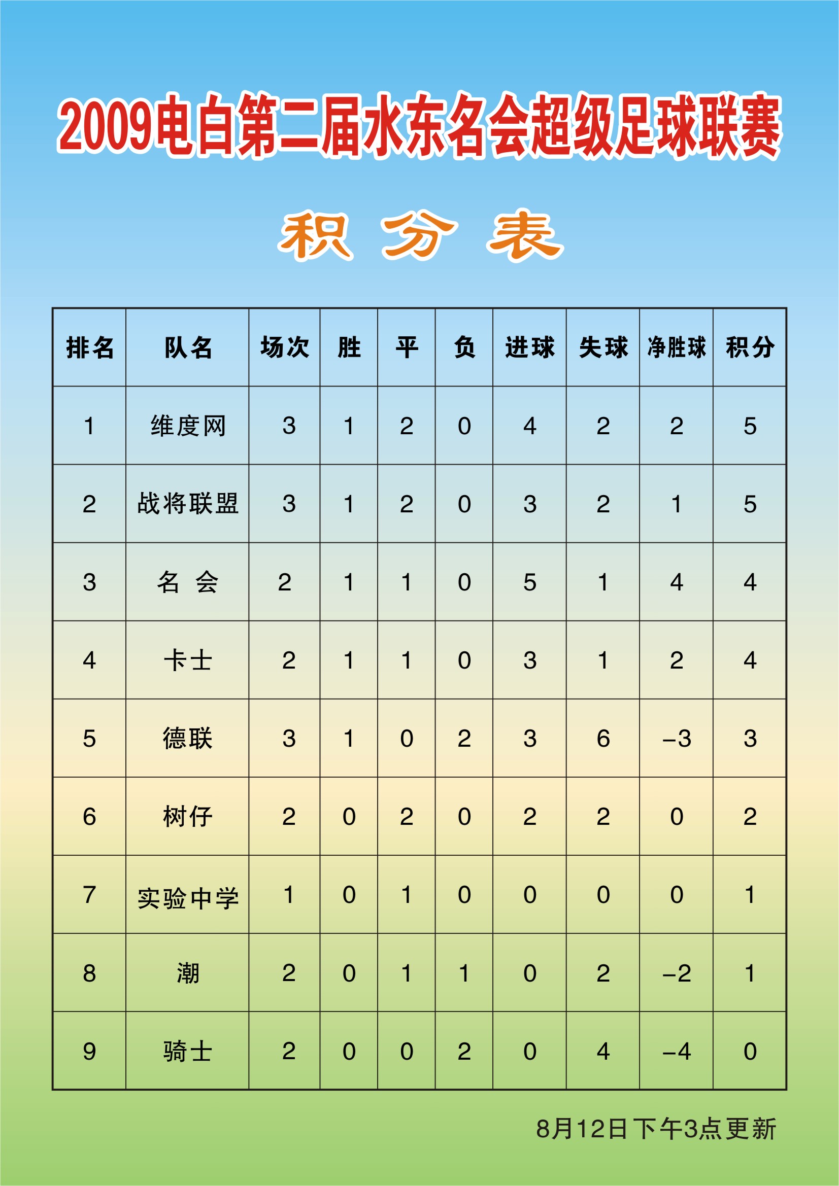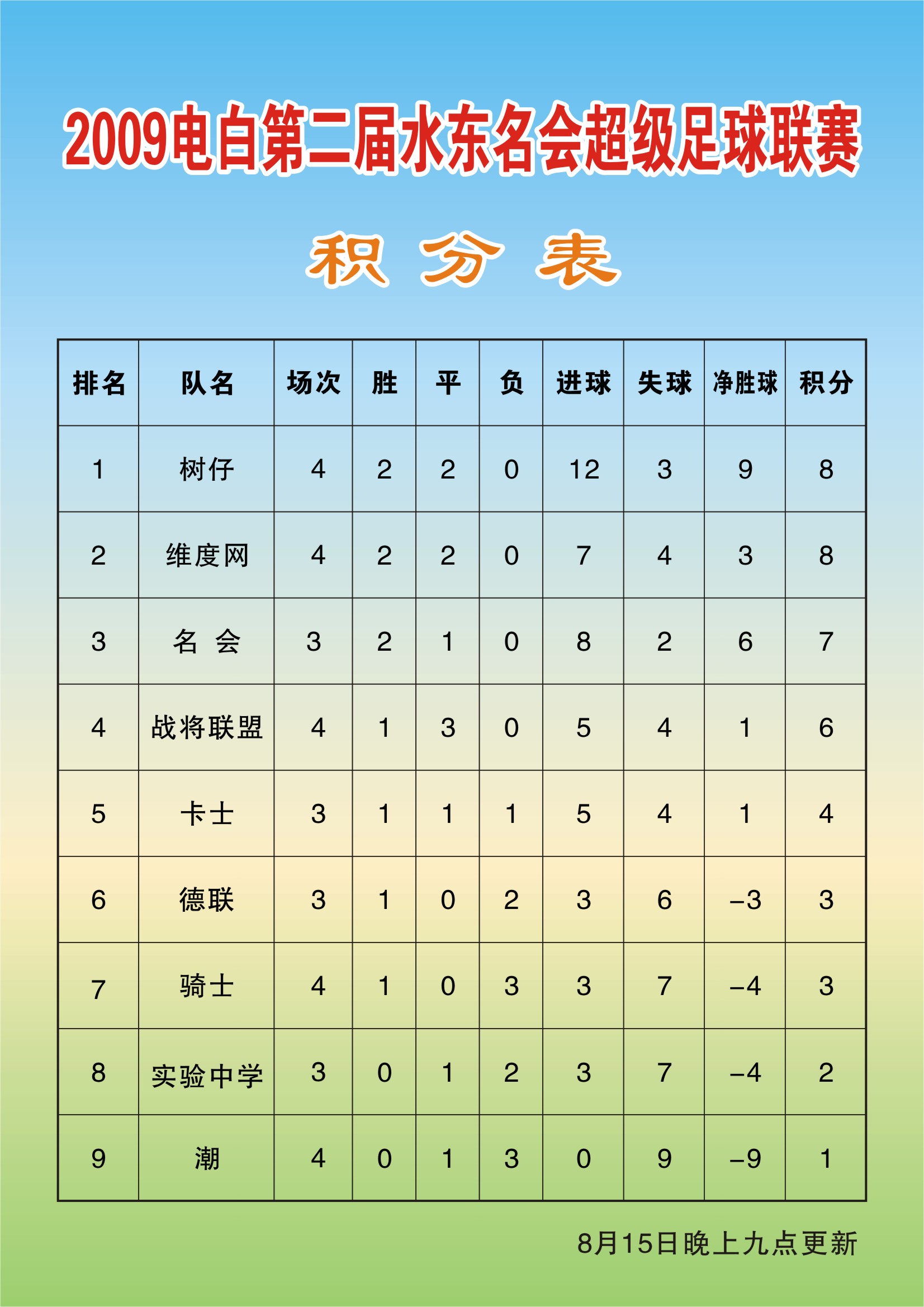2009年电白县第二届水东名会超级足球联赛-积分表